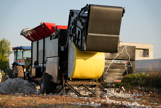 Model Presstige C je navrhnutý tak, aby zvládal náročné úlohy balenia bavlny s vysokou produktivitou a minimálnou stratou materiálu. Pneumaticky lisovaný bavlnený materiál sa v stroji stláča do kompaktných valcovitých balíkov a následne obalí stretch fóliou, čo výrazne zlepšuje jeho manipuláciu a skladovanie.